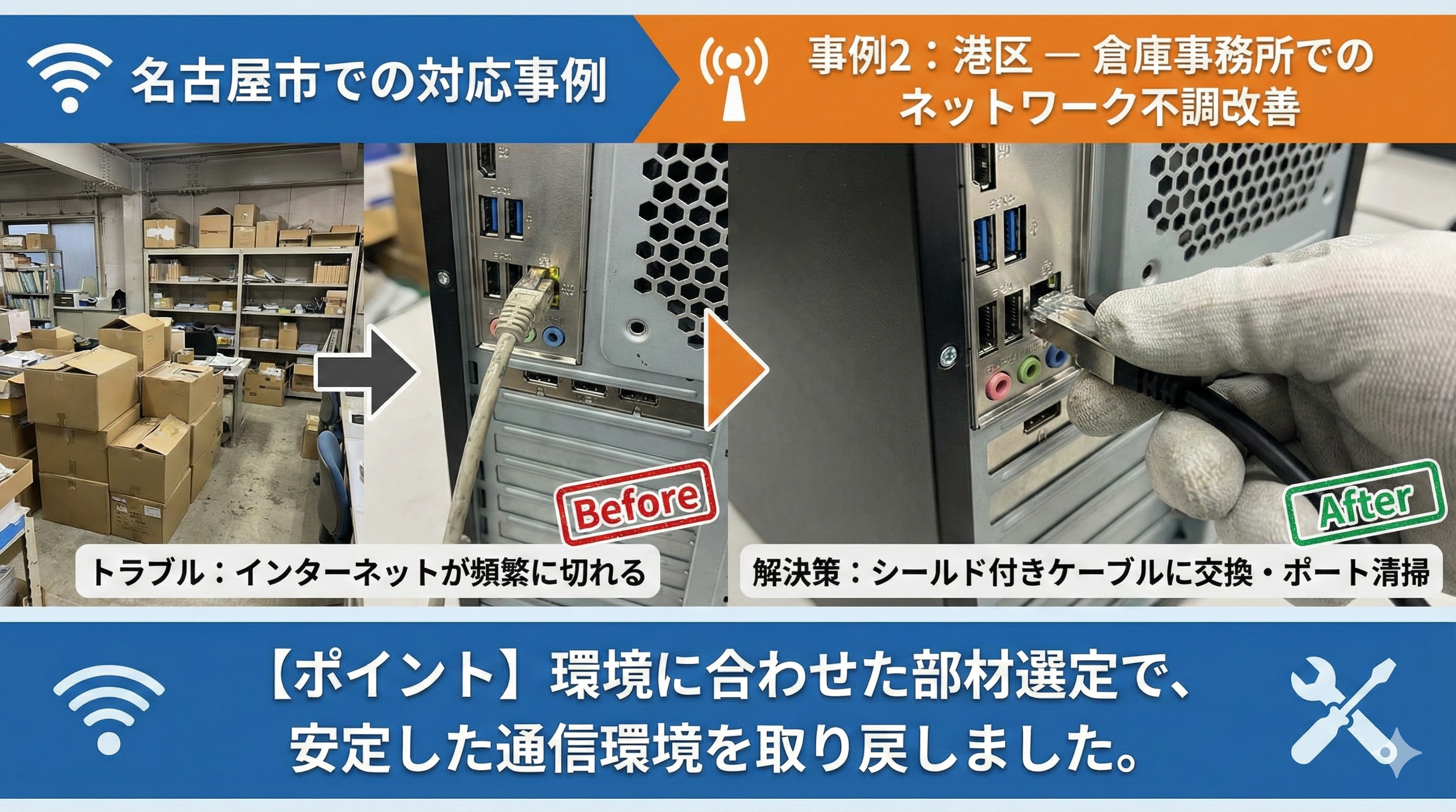 【ポイント】環境に合わせた部材選定を行うことで、安定した通信環境を取り戻しました。