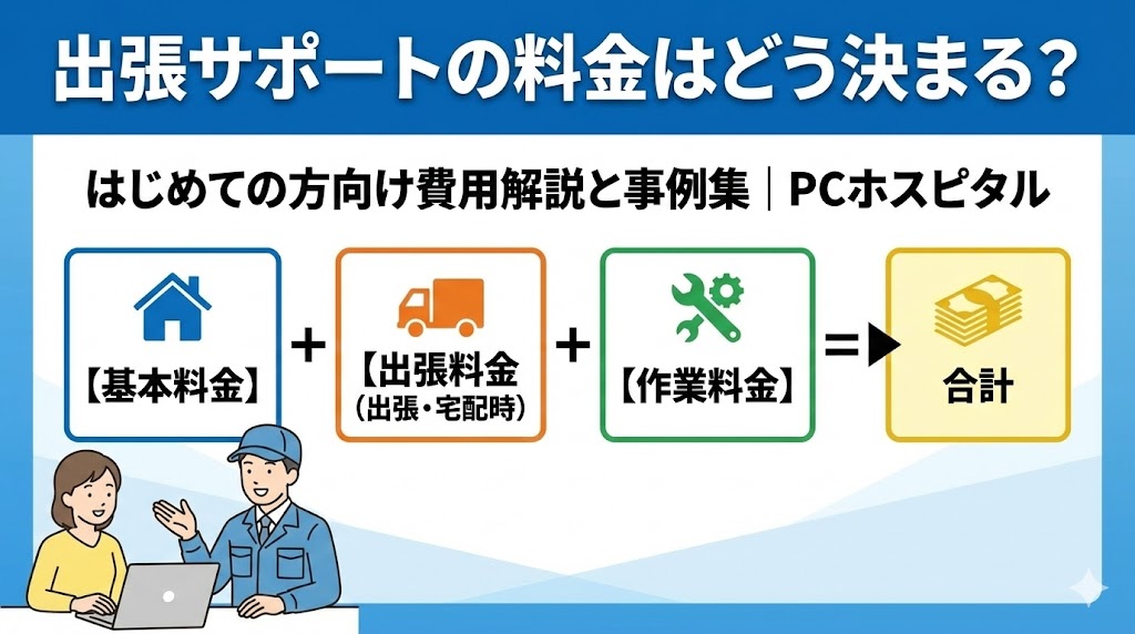 このページでは、弊社の「出張サポートサービス」における料金体系をわかりやすくご説明します。